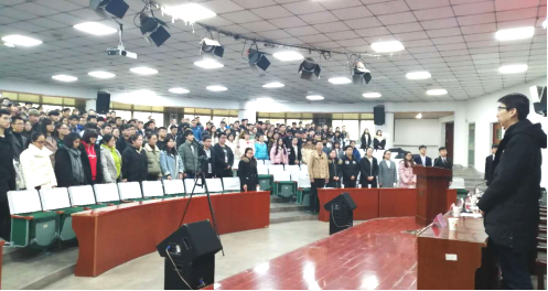 1月4日下午,我院在老校区综合楼2号报告厅召开2018年度学生工作表彰大会。党总支书记段旭朝,院长钱郁,党总支副书记邓茹,副院长张美光,党政办公室主任刘飞和全体辅导员以及班主任、学生代表等500余人参加了会议,邓茹主持会议。