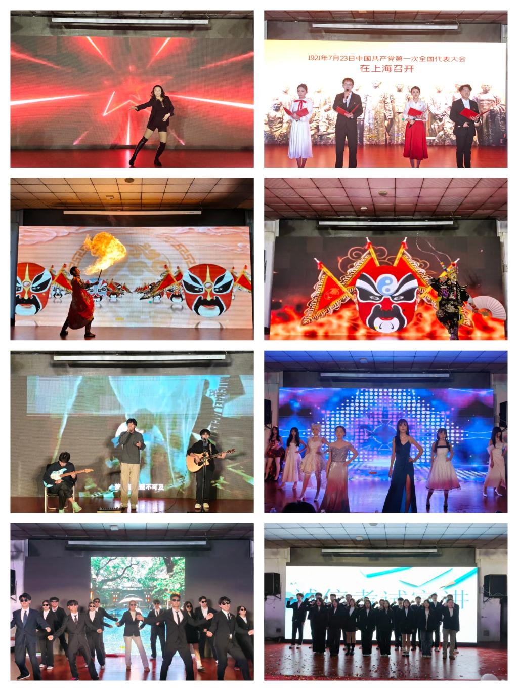 整场晚会节目形式多元、内容鲜活,兼具思想性与观赏性。晚会在一段拉丁舞中热力开场,灵动的舞步踩着明快的旋律,自信的笑容点亮璀璨舞台,瞬间点燃全场热情;舞蹈《Drama》引爆全场,以蓬勃朝气与飒爽风采,划破冬夜寒意、点燃青春热忱;朗诵《复兴路上的青春告白》以铿锵语调诉说青年与时代的同频共振,传递出物电学子“强国有我”的责任担当;歌曲串烧《找自己》《我准备好了》《这一生关于你的风景》,用流行、励志等多元曲风,演绎出青春的迷茫与坚守、热爱与奔赴;吉他弹唱《老男孩》,熟悉的旋律唤起全场师生对青春岁月的共同回忆,温情满满、催人共鸣;《川剧变脸》惊艳亮相,娴熟的手法、瞬息万变的脸谱,让师生近距离感受中华优秀传统文化的独特魅力,赢得阵阵喝彩;小品《占位子》,以幽默诙谐的情节还原校园日常,在欢声笑语中传递积极向上的生活态度;舞蹈《Jump》,节奏利落、气场全开,用活力舞姿将现场氛围推向高潮;时尚走秀《步履生韵》,则以端庄雅致的仪态、行云流水的动作,展现了物电学子内外兼修的良好素养;学院团委学生会全体成员带来的压轴舞蹈,以整齐划一的动作、朝气蓬勃的面貌,展现了学生组织的凝聚力与战斗力。晚会尾声,全体在场同学庄严进行诚信考试宣誓,铿锵誓言响彻报告厅,彰显了物电学子坚守学术准则、恪守道德底线的坚定信念。