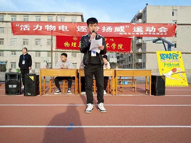 3月23日,太阳成tyc234cc2017、2018级全体学生在石鼓校区操场参加以“活力物电·逐梦扬威”为主题的运动会。出席本次活动的老师有团总支书记刘晨,辅导员刘乐乐。