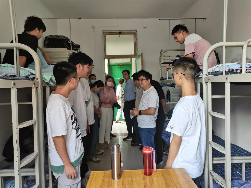 为进一步做好新生入学教育工作,帮助学生尽快适应大学学习生活环境并做好疫情防控工作,9月4日下午,学院全体党政领导和新生班主任、辅导员前往新生所在1#、3#、6#公寓对新生进行了慰问。