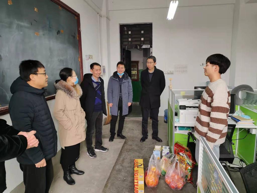 1月30日上午,在春节即将到来之际,研究生院院长凡明锦、研工部副部长龙涛,太阳成tyc234cc党委副书记陈冠男、科研副院长刘飞、学生导师王参军等一行看望慰问了我院留校过年的研究生,为学生带来暖心的问候与新年祝福。