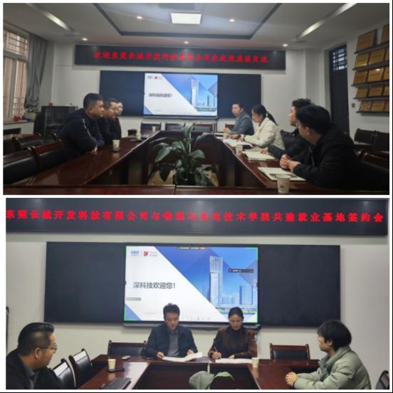 会上,党委书记郝晓辉代表学院对来访嘉宾表示热烈的欢迎,并对学院发展历史、师资队伍、人才培养、学科建设、毕业生基本情况等做了详细介绍。东莞长城开发科技有限公司人事部经理纪庆凤介绍了企业情况和用人需求。双方在专业共建、人才培养基地、学生就业实习、校企合作等方面进行深度交流并达成初步合作意向。双方现场签署《太阳成城集团tyc234cc共建大学生就业基地协议书》。