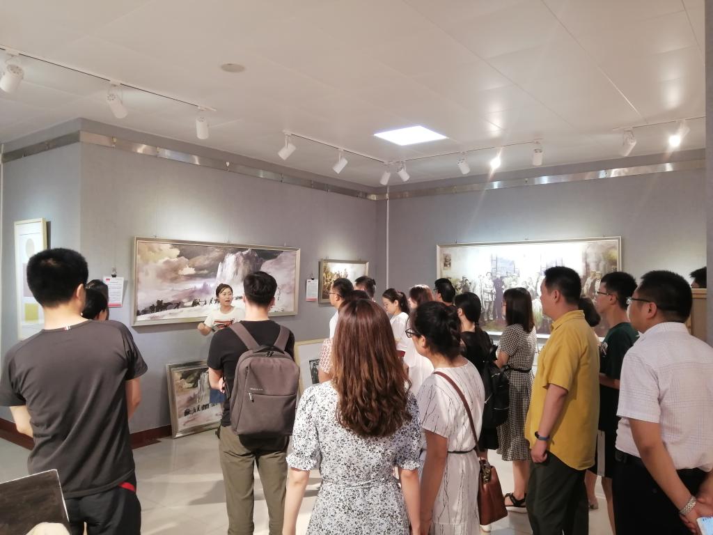 在讲解员的带领下,大家参观了《北大钟声》、《狼牙山五壮士》、《抗击非典》等25幅经典党史画作,作品类型包括国画、油画,从建党初期到抗日战争、改革开放及十八大以后,生动再现了中国共产党100年波澜壮阔的光辉历程,观展人员认真欣赏,深入了解了作品背后的党史故事。