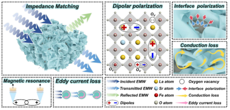 随着电子技术的飞速发展,如何有效消除电磁污染面临严峻挑战,钙钛矿型复合氧化物因其独特的结构和极好的物理化学性质在电磁吸波领域具有很大的潜力。该工作借助A位离子替代策略,掺杂Sr离子到La离子位置,并且通过水热法在其表面负载修饰层状MoS2,通过引入极化现象改善钙钛矿型复合氧化物的介电性能,实现介电/磁损耗协同调控机制。将制备的复合材料La0.7Sr0.3FeO3(LSFO)/MoS2作为涂层填料加入到环氧树脂涂层体系中,在厚度为1.9mm时获得最小的反射损耗-67.09dB,在厚度为2.3mm时获得最大的有效吸收带宽7.28GHz,显示了优异的多波段电磁吸收性能。这一策略为探索新型的钙钛矿型复合氧化物基电磁吸波材料涂层提供了新的方向,为设计高效、多频带吸收剂拓宽了理想候选材料。