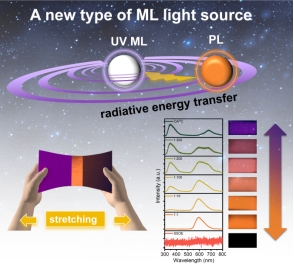 该研究工作主要针对性能优异的光致发光材料不具备力致发光性能,或者具备的力致发光性能较弱这一问题,提出了一种通过紫外力致发光材料的辐射能量传递,实现光致发光材料的力致发光性能从无到有或从弱到强的通用策略。此外,研究还发现,紫外力致发光材料作为能量供体,CaAlSiN3: Eu2+, BaMgAl10O17: Eu2+, Sr3SiO5: Eu2+等性能优异的光致发光材料作为能量受体,通过调整能量供体和受体的组成比例,可以使力致发光的颜色在一定范围内可调谐。在CAPC@energy acceptor@PDMS复合体系中,多色的力致发光性能依赖于简单的辐射能量传递(重吸收)机制,而不是离子激发态之间复杂的能量转移。使用这种策略,可以使某些高效的光致发光材料作为力致发光材料成为可能。这项工作为多色力致发光材料的选择和开发提供了一种简单、可行和通用的策略。