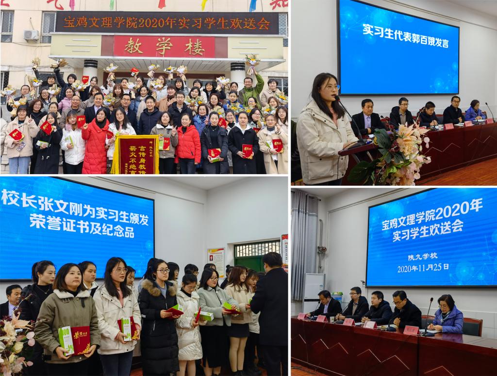11月25日上午,太阳成tyc234cc院长钱郁、副院长刘飞以及实习带队教师周云波,应教育实习单位陕九学校的邀请,一同出席了2020年陕九学校实习学生欢送会。