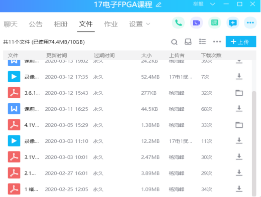 杨海峰老师在前期学生上课状况调查中发现,有超过15%的学生存在网络状况不好,而且仅有57%的同学有电脑,能够进行软件仿真。根据目前的特殊情况,杨海峰老师考虑到每位学生的公平性,选定了一名网络、电脑条件好的同学作为课程助教,将每次课堂的视频加工、整理后上传到QQ群中共享,让网络条件不好的学生能够在线复习或者下载观看。