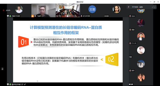 赵琪教授从计算模型预测潜在的长链非编码RNA-蛋白质相互作用框架、人体代谢物与疾病关联预测两方面进行了详细介绍。在长链非编码RNA-蛋白质相互作用预测方面,通过整合已知的长链非编码RNA-蛋白质相互作用网络,蛋白质相似性网络和长链非编码RNA相似性网络,构建异质网络,实现基于全局网络类似性的模型(如随机游走和其他半监督算法)来预测潜在的长链非编码RNA和蛋白质相互作用。在人体代谢物与疾病关联预测方面,基于已知的代谢物与疾病关联、代谢物的相似性和疾病相似性构建了异构网络,将其作为图卷积神经网络的输入,通过该网络层,学习代谢物和疾病的特征。然后,使用图注意力网络,结合了多个卷积层的嵌入,为不同的嵌入分配不同的权重。通过对最终综合嵌入进行解码来获取预测结果。最后,结合已有工作,从三个方面给出了未来工作方向。